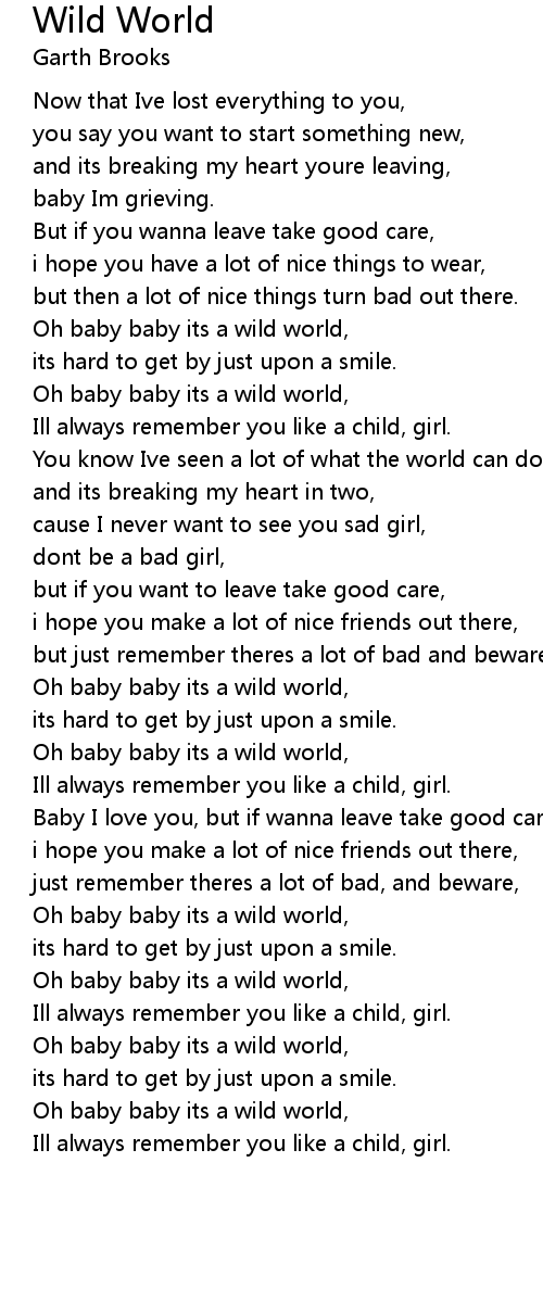Oh baby baby its a wild world, |