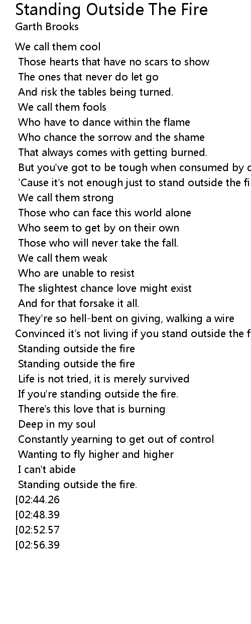 'Cause it's not enough just to stand outside the fire. |