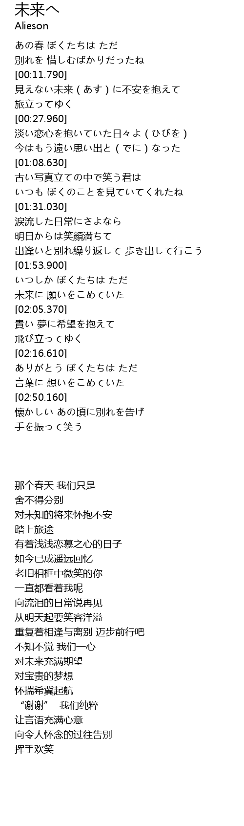 | [02:50.330] | 懐かしい あの頃に別れを告げ |