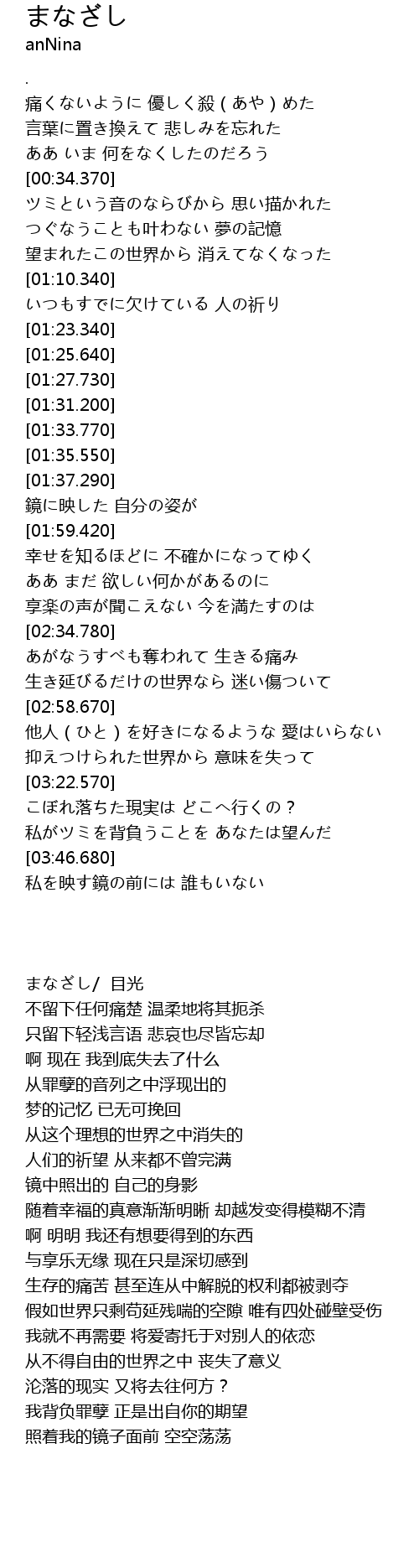 | [03:36.560] | 私がツミを背負うことを あなたは望んだ |