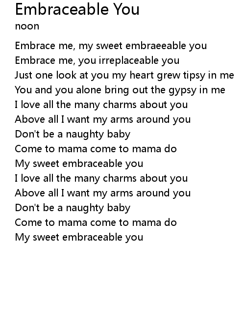 | Embrace me, my sweet embraeeable you | |