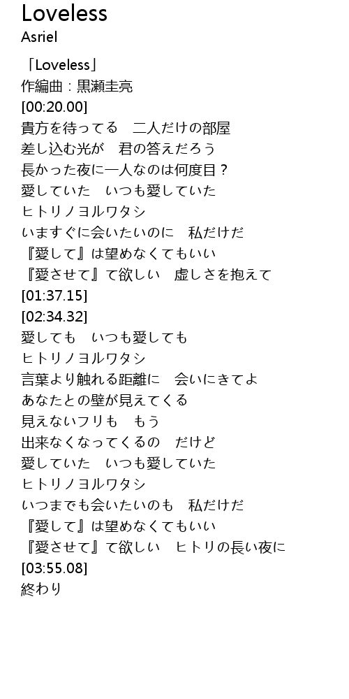 | [00:00.00] | 「Loveless」 |