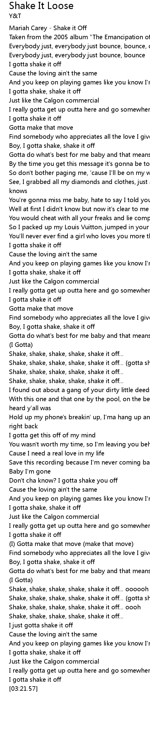 [01:44.04] Shake, shake, shake, shake, shake it off... (gotta shake it off)