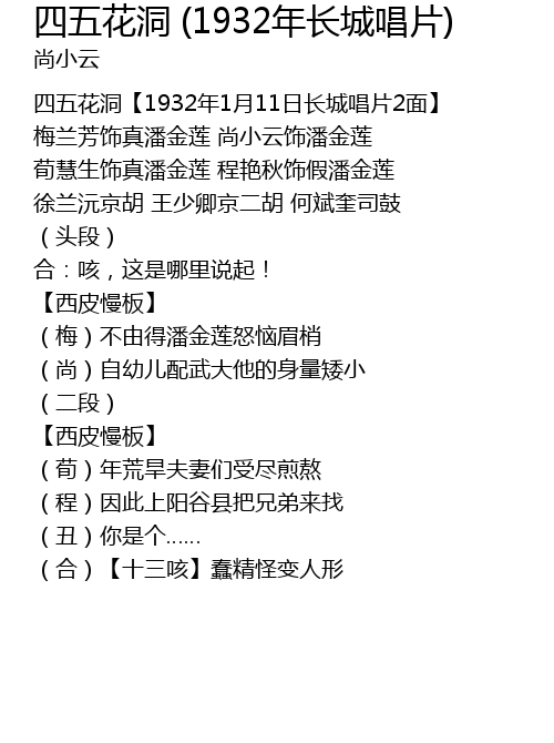 | [00:00.00] | 四五花洞【1932年1月11日长城唱片2面】 |