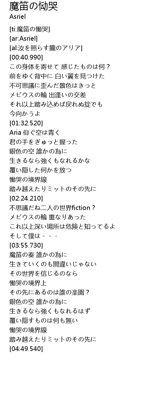 | [03:59.650] | 魔笛の奏 誰かの為に |