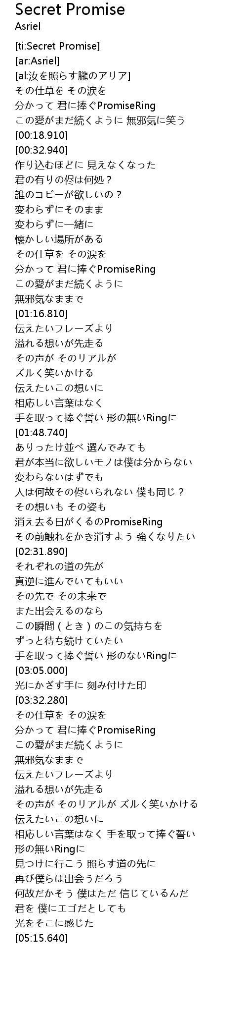 | [00:04.960] | 分かって 君に捧ぐPromiseRing |
