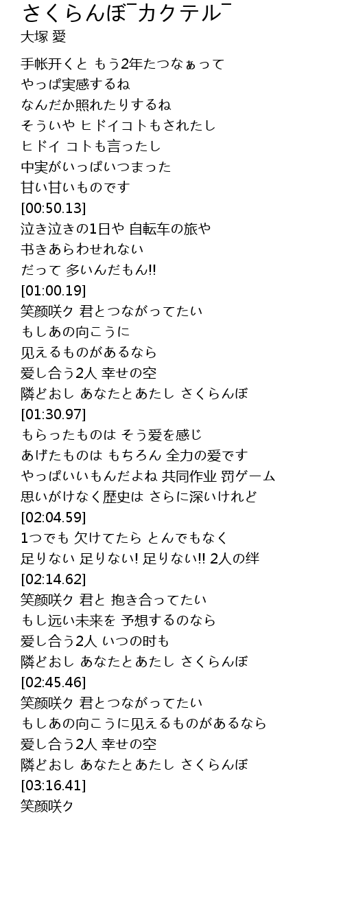 | [03:08.95] | 隣どおし あなたとあたし さくらんぼ |