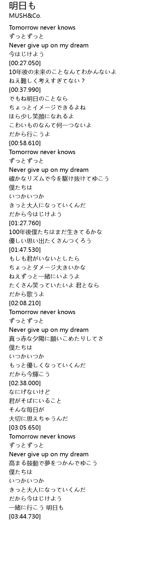 | [03:06.060] | Tomorrow never knows |