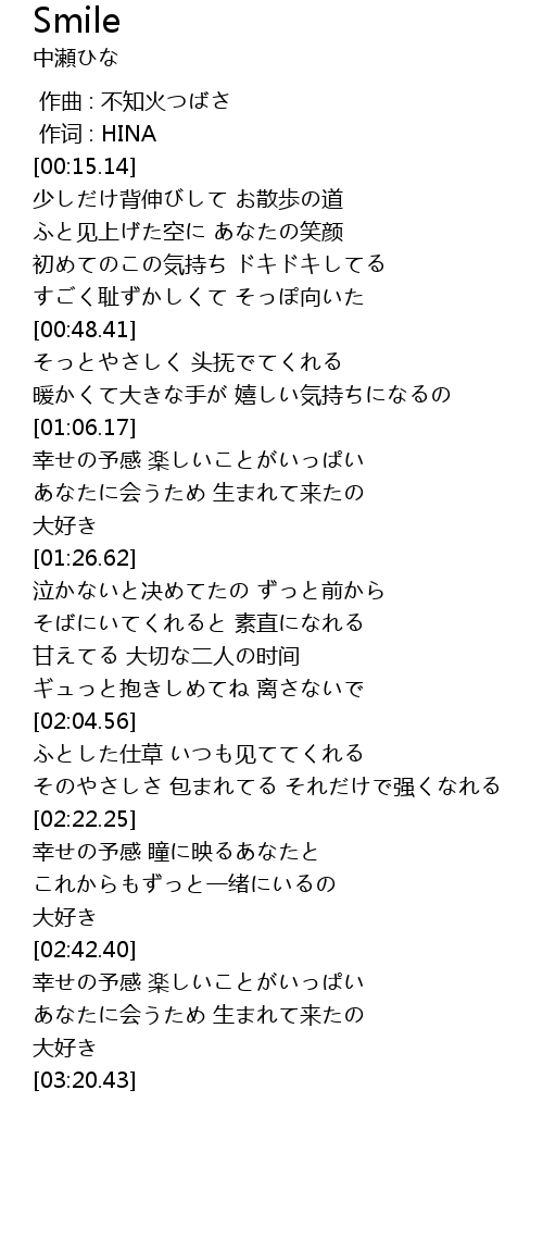 | [03:01.83] | 幸せの予感 楽しいことがいっぱい |