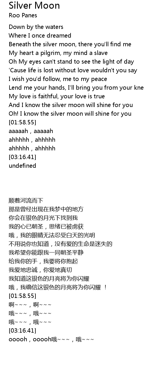 | [00:53.45] | Beneath the silver moon, there you' ll find me |