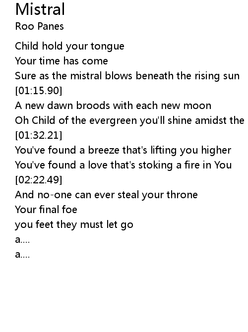 | [01:09.69] | Sure as the mistral blows beneath the rising sun |