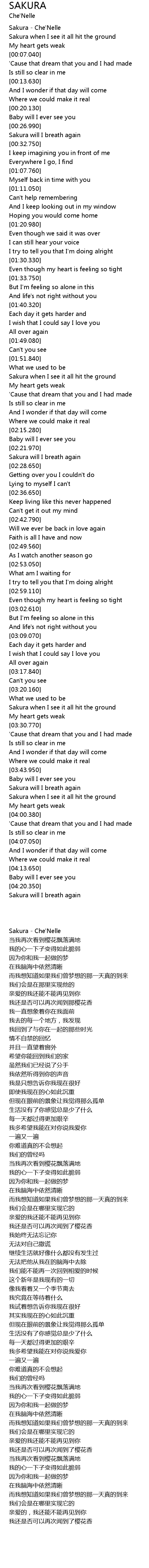 | [00:00.320] | Sakura - Che'Nelle |