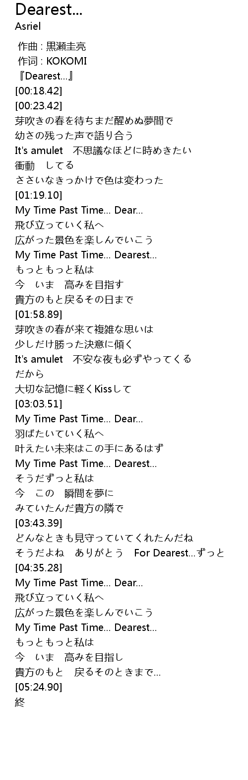 | [04:23.98] | そうだよね ありがとう For Dearest...ずっと |