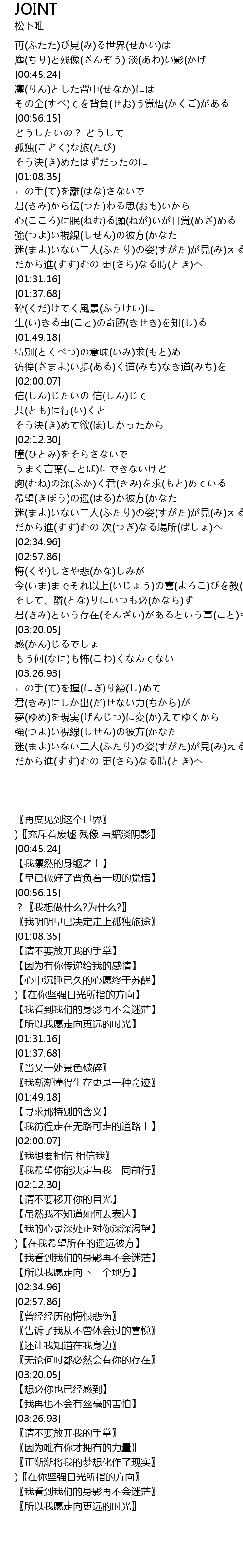 | [02:06.34] | 共(とも)に行(い)くと そう決(き)めて欲(ほ)しかったから |