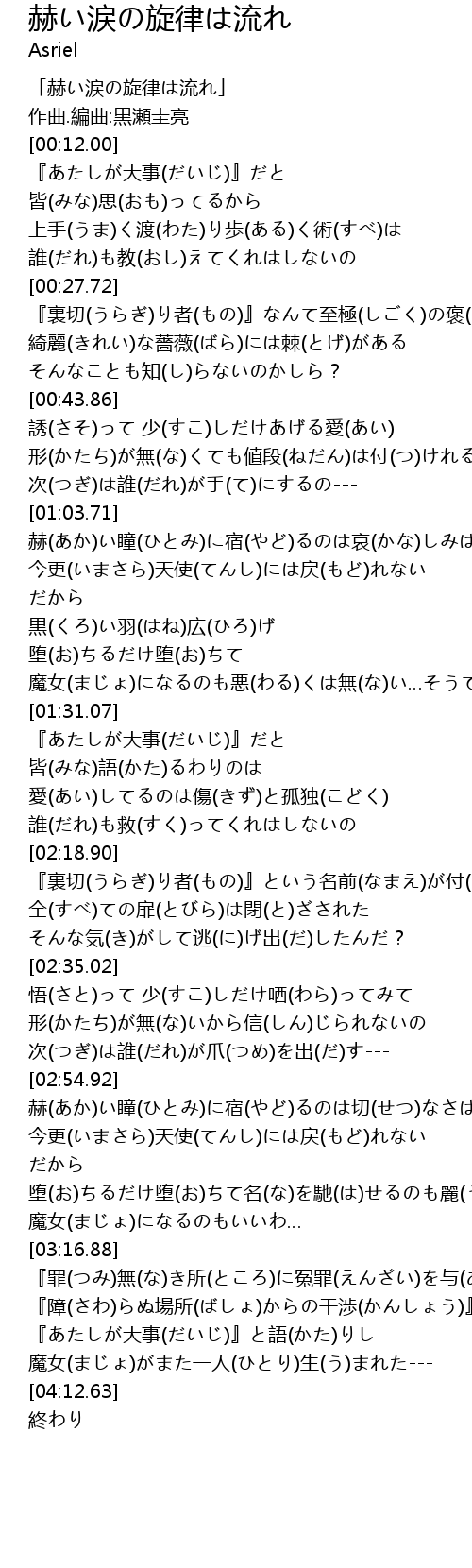 | [00:00.00] | 「赫い涙の旋律は流れ」 |