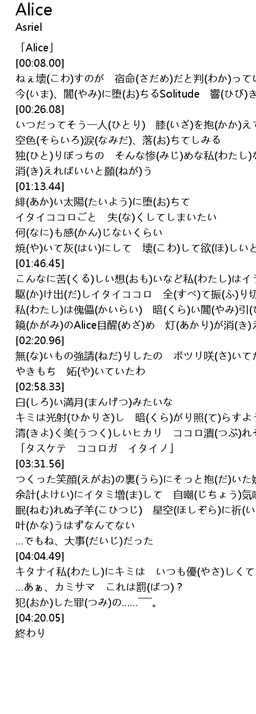 | [00:00.00] | 「Alice」 |