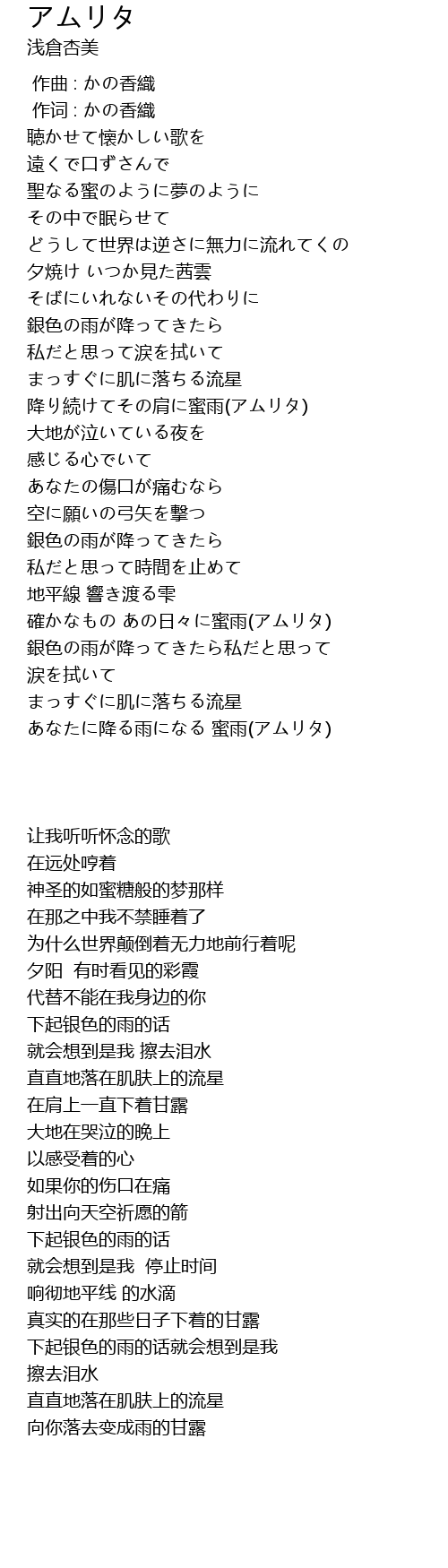 | [03:47.15] | あなたに降る雨になる 蜜雨(アムリタ) |