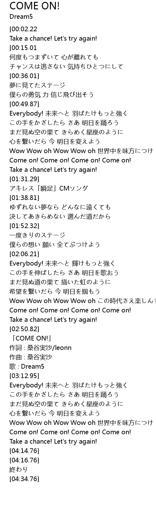 | [04:02.19] | Come on! Come on! Come on! Come on! |