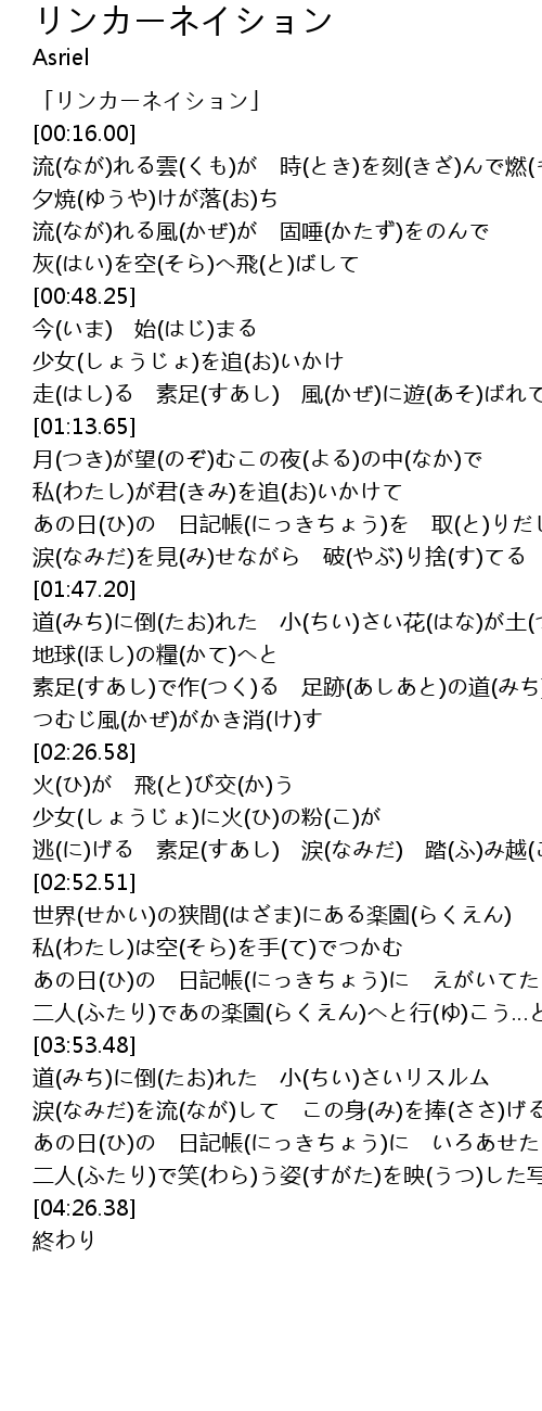 | [00:00.00] | 「リンカーネイション」 |