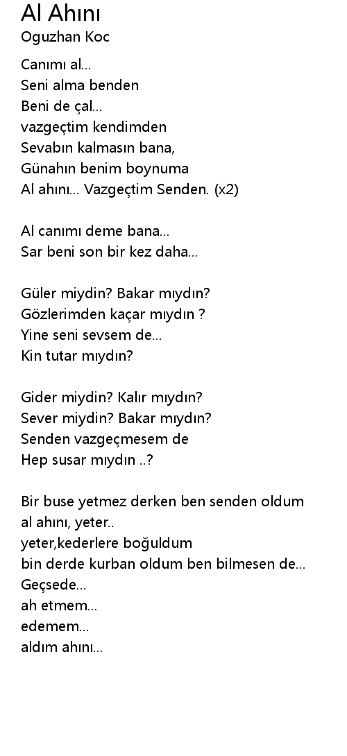 | Al ahını... Vazgeçtim Senden. (x2) | |