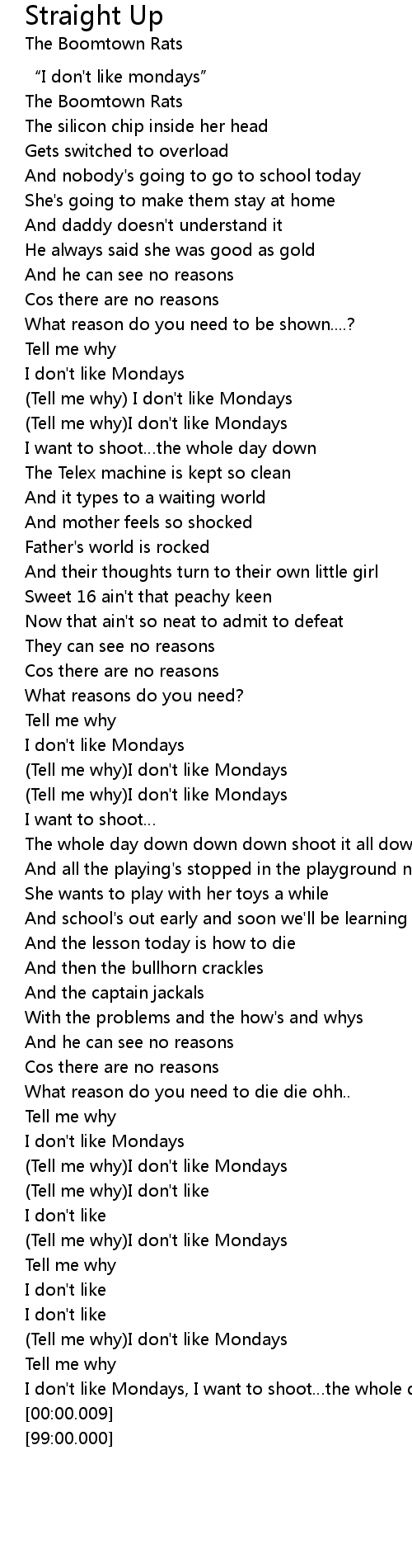 | [03:04.79] | Tell me why I don' t like Mondays |