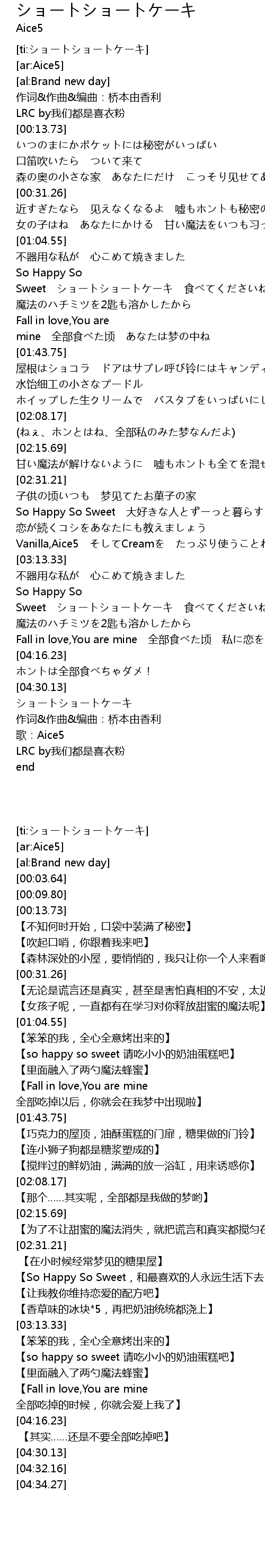 | [01:14.81] | So Happy So Sweet ショートショートケーキ 食べてくださいね |