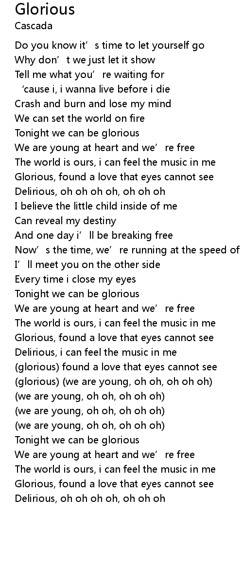 | [02:39.890] | glorious we are young, oh oh, oh oh oh |