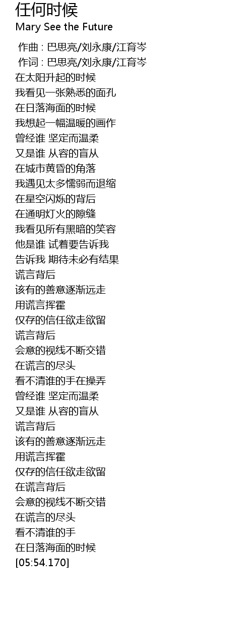| [00:00.00] | 作曲 : 巴思亮/刘永康/江育岑 |
