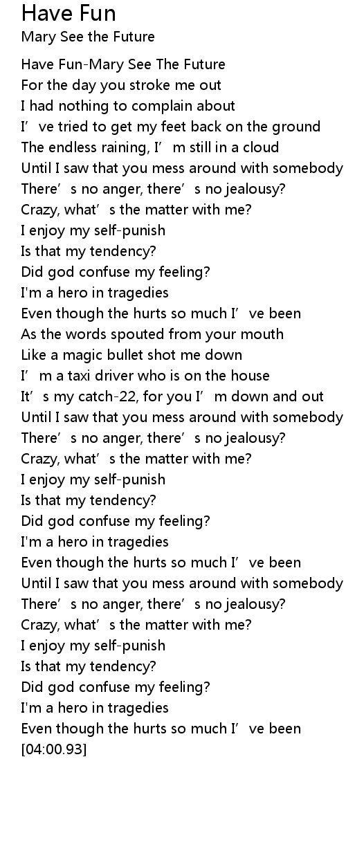 | [02:19.57] | Crazy, what’s the matter with me? |