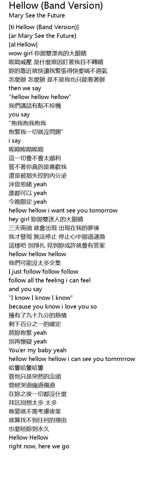 | [01:36.36] | hellow hellow i want see you tomorrow |