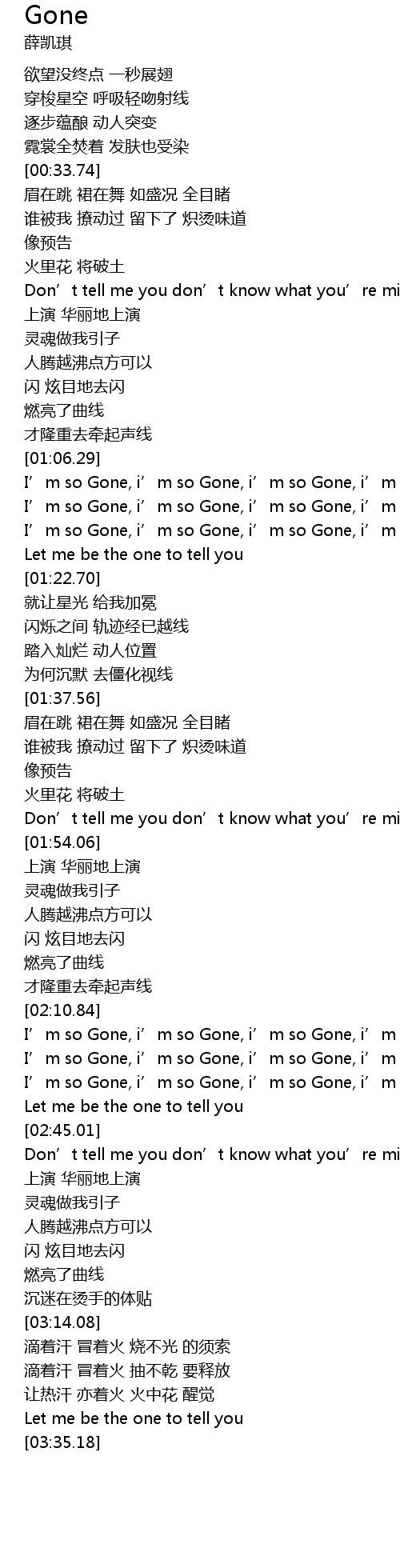 | [02:18.72] | I’m so Gone, i’m so Gone, i’m so Gone, i’m so Gone |