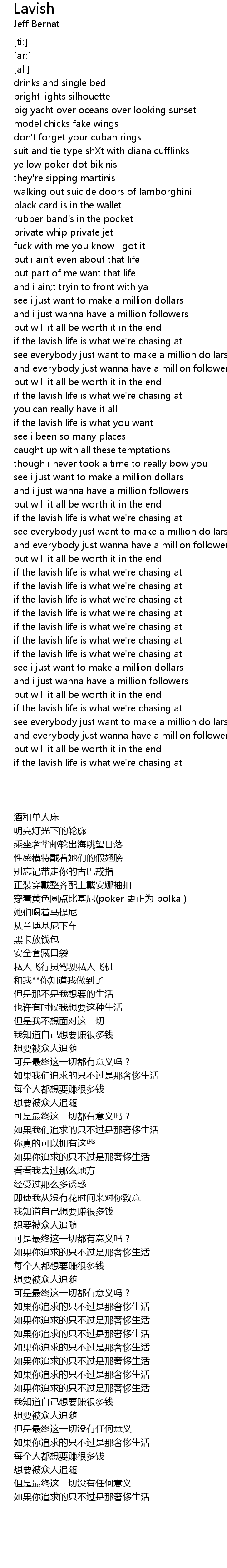 if the lavish life is what we're chasing at |