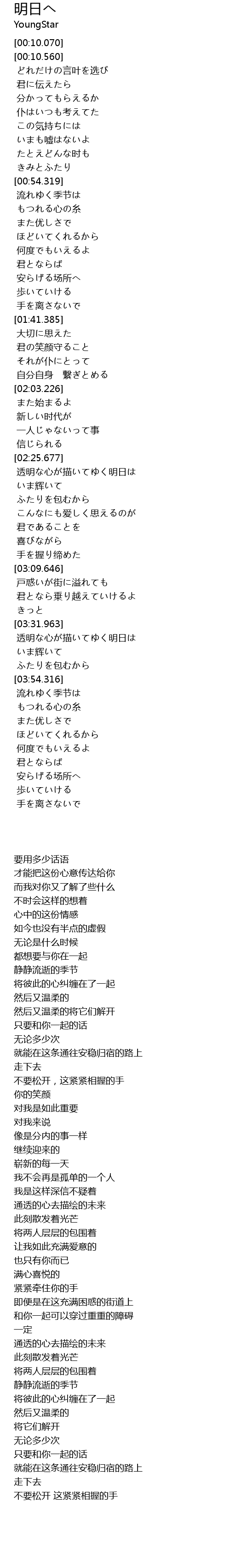 | [02:26.329] | 透明な心が描いてゆく明日は |