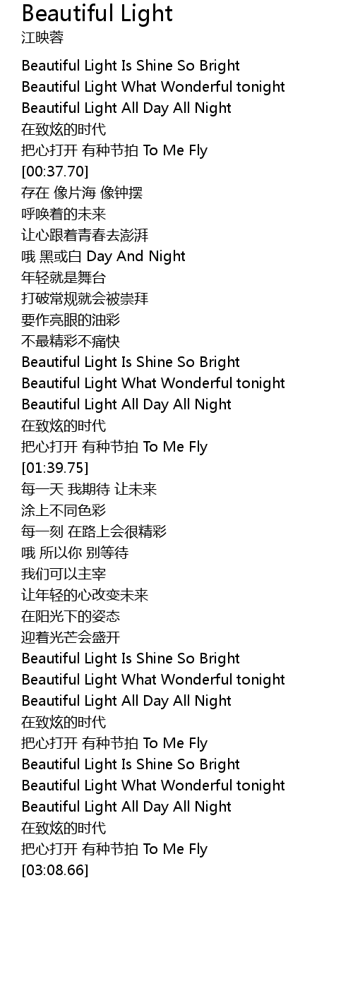 | [01:20.44] | Beautiful Light Is Shine So Bright |
