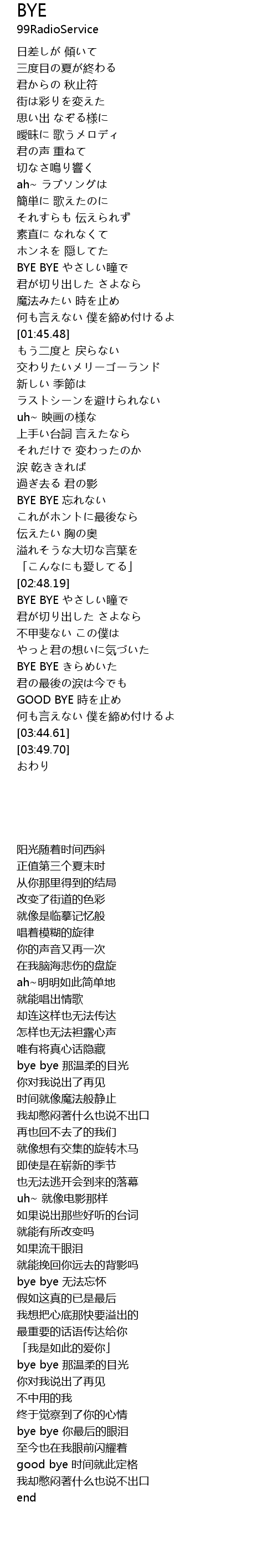 BYE BYE やさしい瞳で |