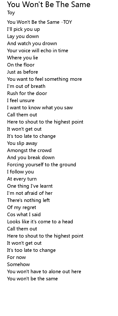 You Won't Be The Same Lyrics
