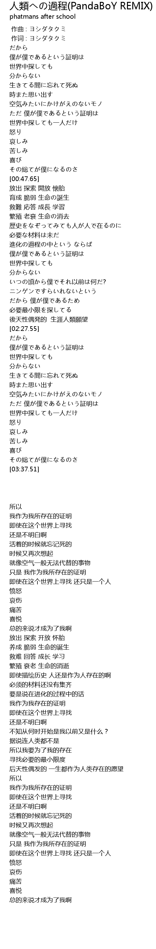 | [02:19.61] | 後天性偶発的 生涯人類願望 |