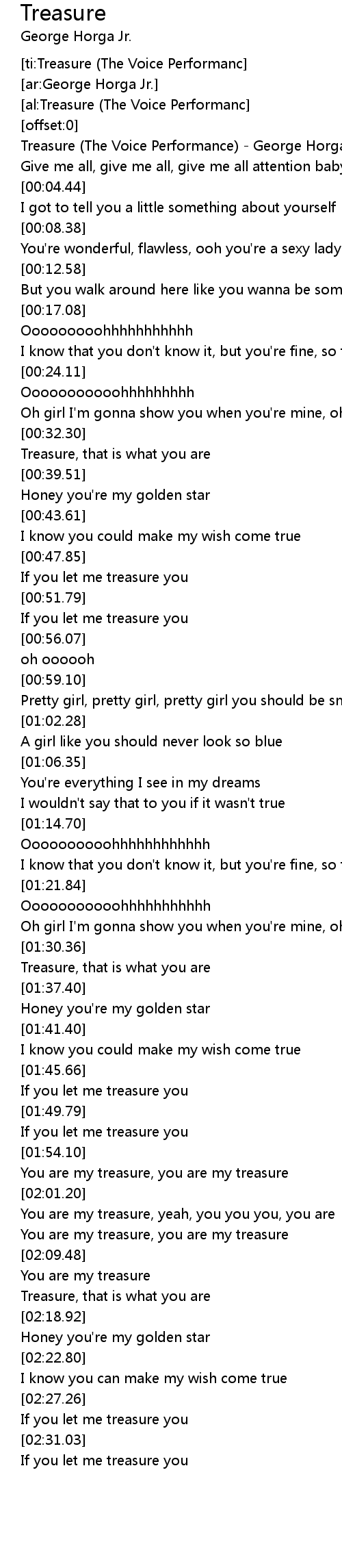 [00:00.60] Treasure (The Voice Performance) - George Horga Jr.