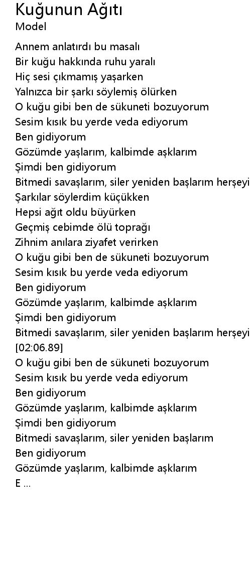 | [02:54.33] | Şimdi ben gidiyorum |