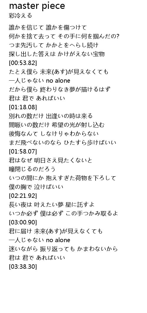 | [00:49.27] | 探し出した答えは かけがえない宝物 |