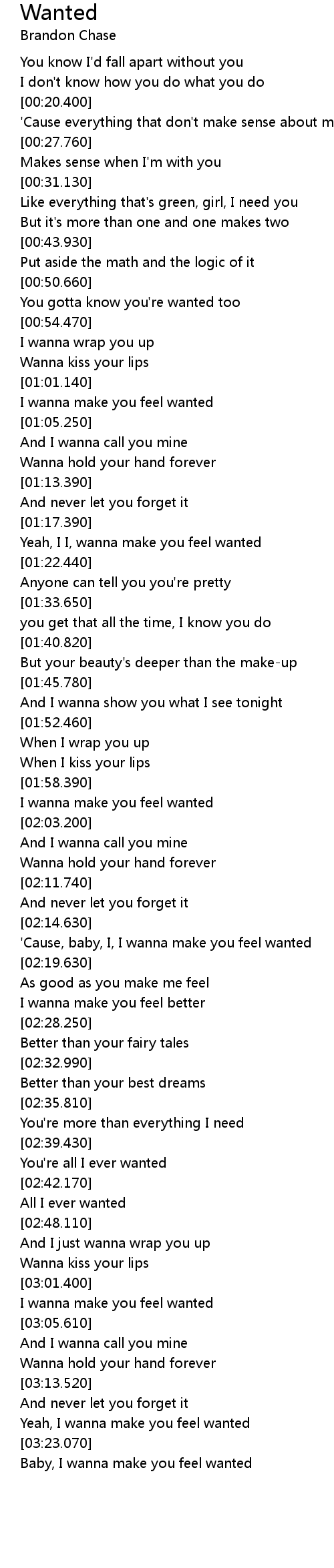 You gotta know you're wanted too |