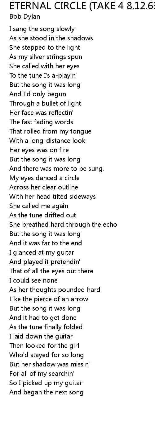 ETERNAL CIRCLE (TAKE 4 8.12.63) Lyrics