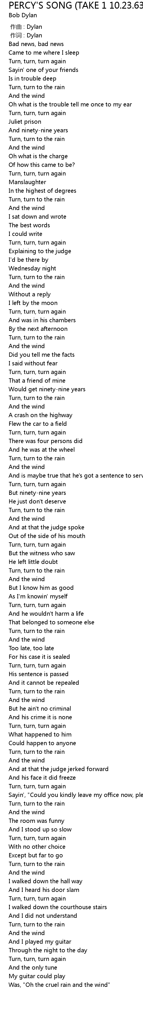 | Song | PERCY'S SONG (TAKE 1 10.23.63) |