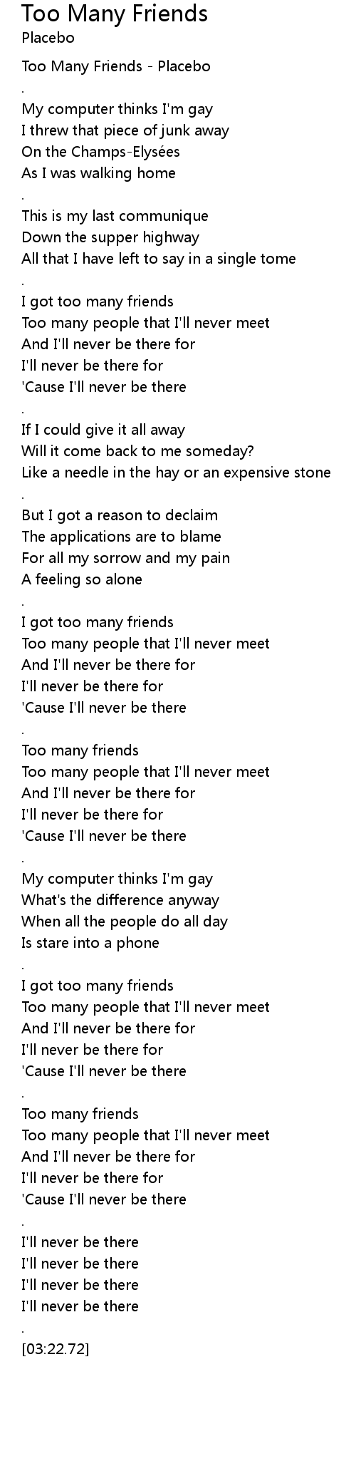| [02:46.43] | Too many friends |