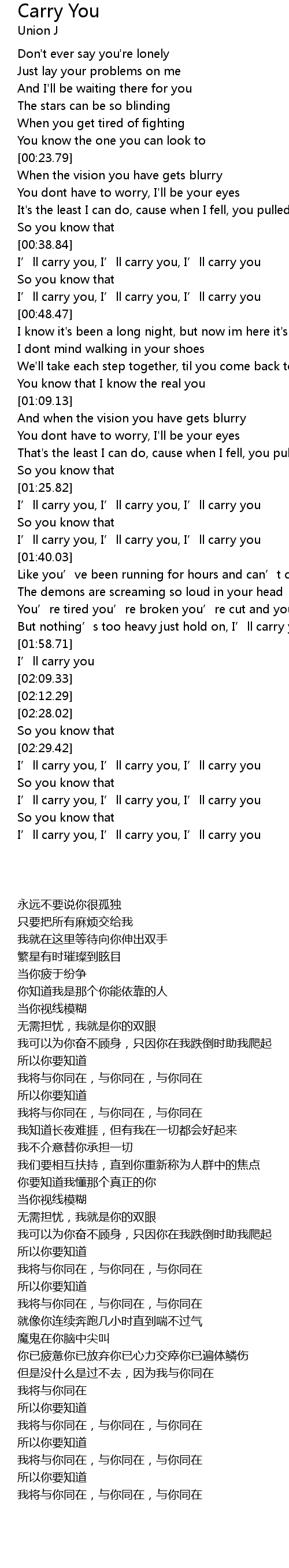 | [01:33.83] | I' ll carry you, I' ll carry you, I' ll carry you |