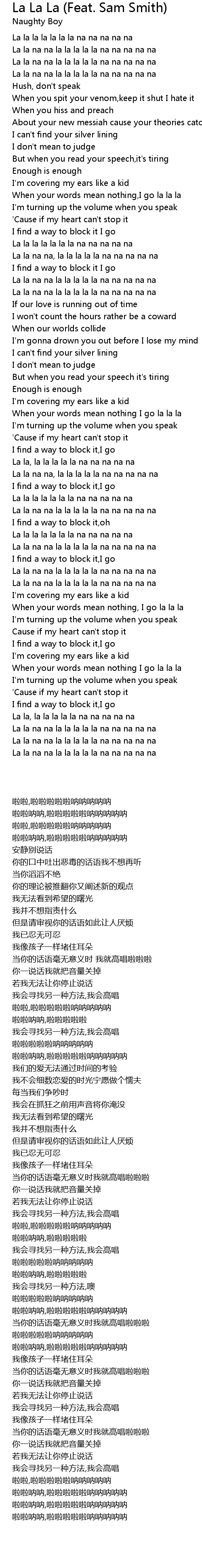 When your words mean nothing,I go la la la |