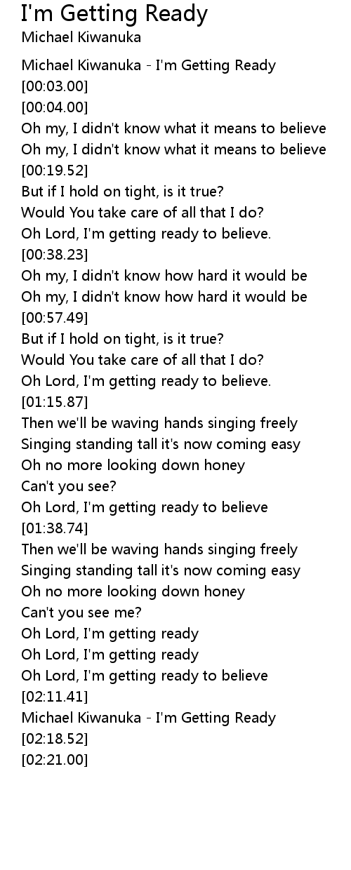 [00:01.00] Michael Kiwanuka - I'm Getting Ready