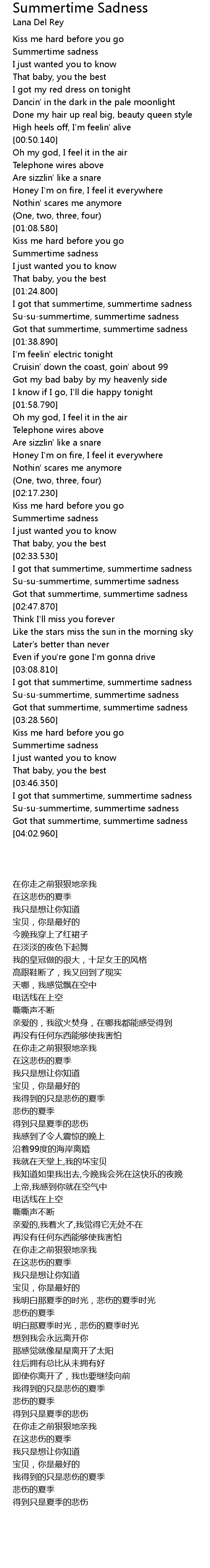 I got that summertime, summertime sadness |