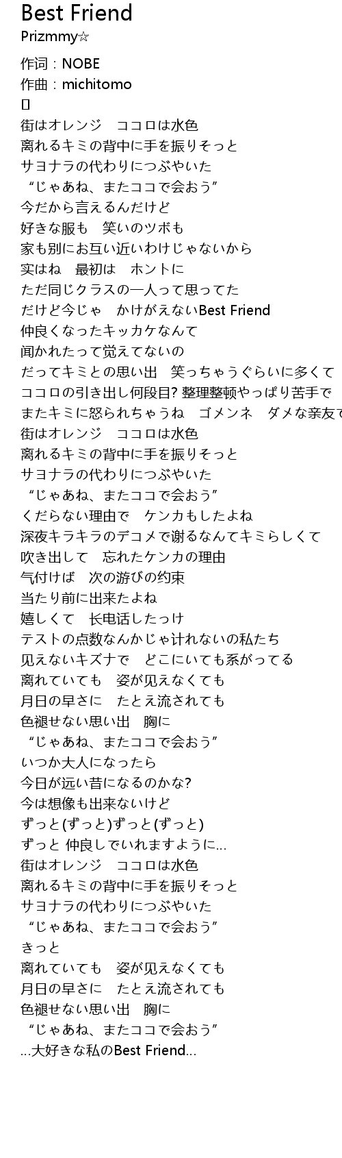 | だけど今じゃ かけがえないBest Friend | |