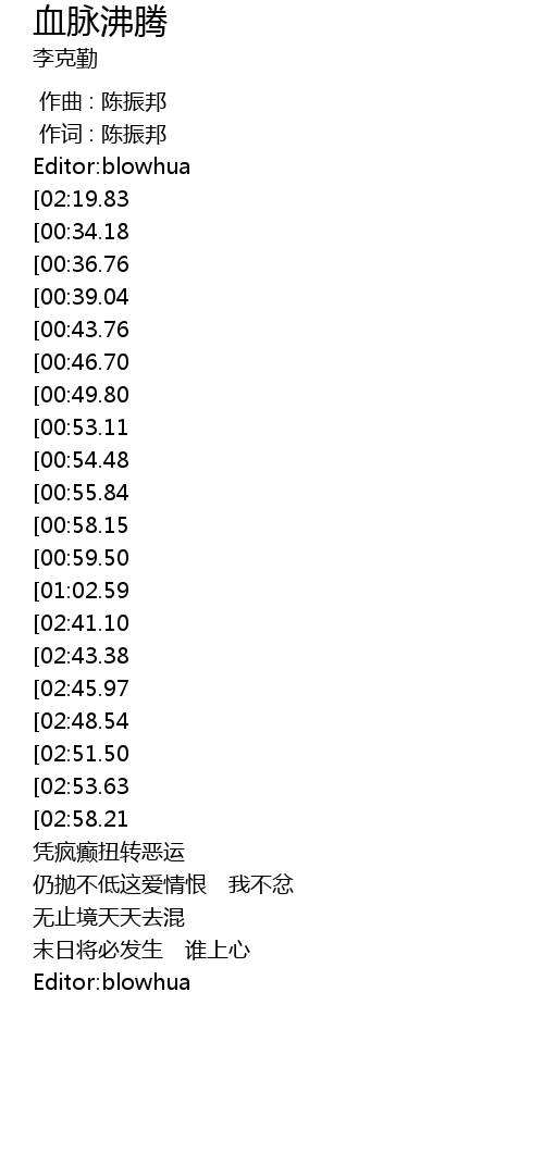 | [00:00.00] | 作曲 : 陈振邦 |